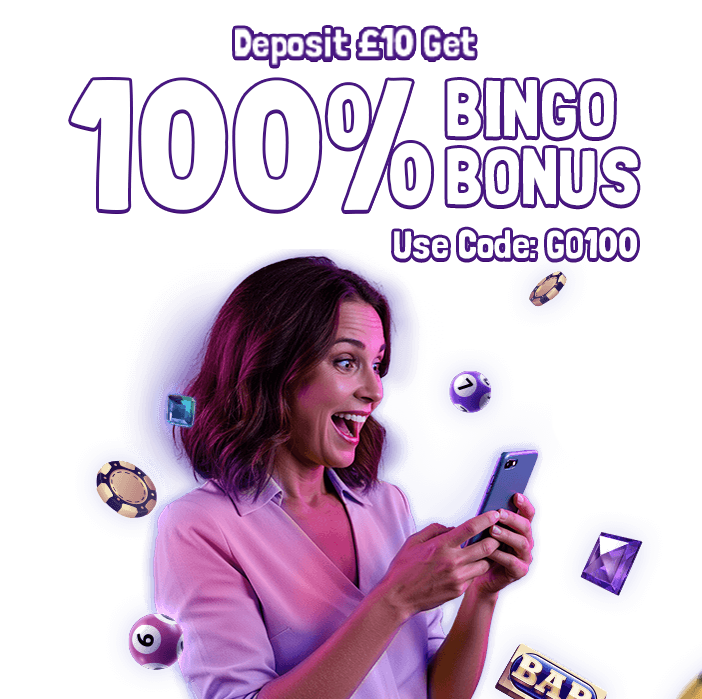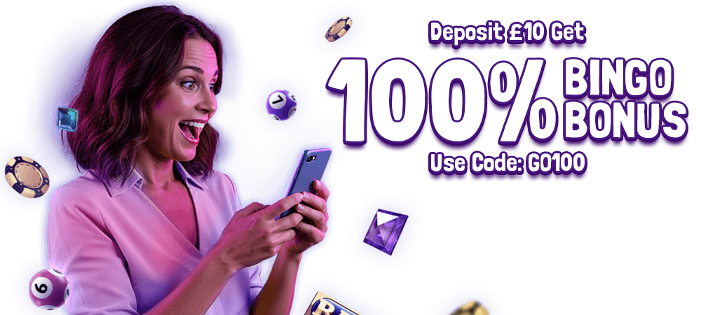 Your Welcome Bonus is ready to claim on your first deposit. Get a sweet 100% deposit match in Bingo Bonus up to a whopping £50 when you deposit between £10 and £50 with code GO100. Full Welcome Offer Details →